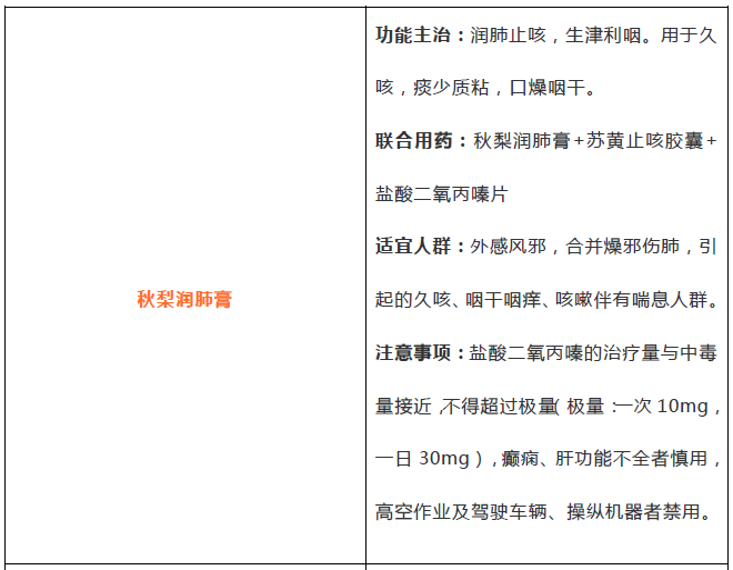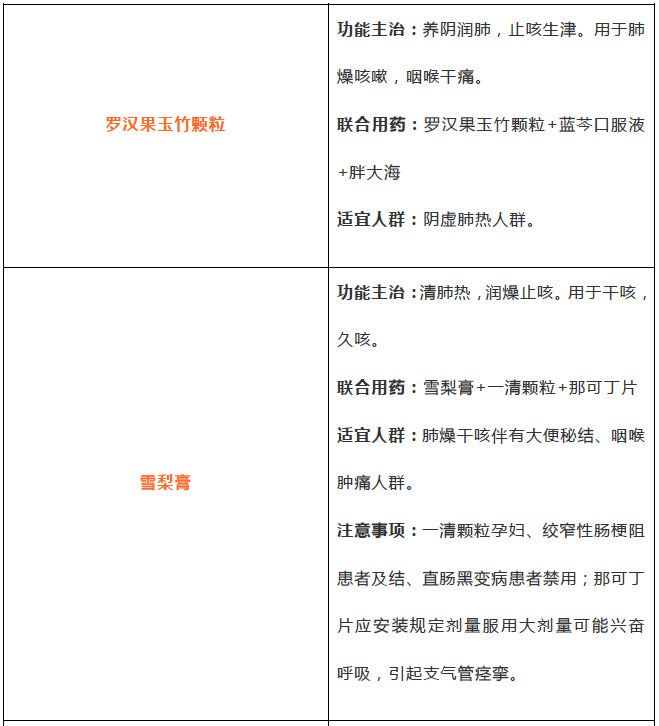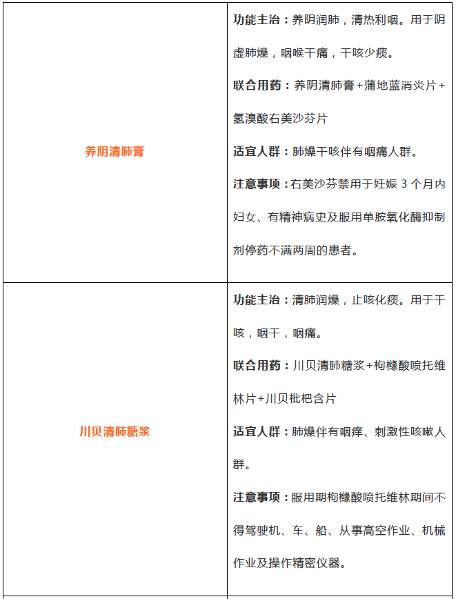肺燥咳嗽是因肺虚液少或燥邪伤肺所致的咳嗽,这类患者常表现为反复咳嗽、少痰或无痰,伴有口干、咽痛、便秘、尿赤、身热或伴有喘息等症状。有以下用药参考: