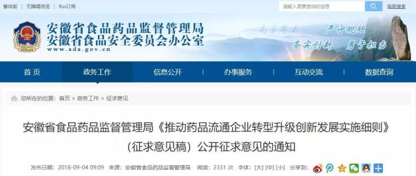近日,安徽省药监局针对去年12月份下发的《关于推动药品流通企业转型升级创新发展的指导意见》(以下简称意见)又起草了相关实施细则,并公开征求意见。