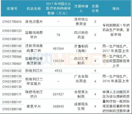 2个产品为重新申报,获批后通过一致性评价