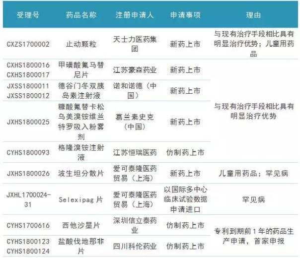 深圳信立泰药业的西他沙星片、四川科伦药业的盐酸伐地那非片这2个产品拟纳入优先审评的理由均为“专利到期前1年的药品生产申请,首家申报”。
