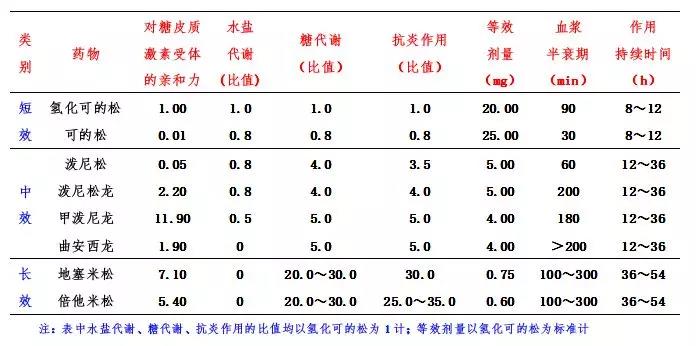 常用糖皮质激素类药物比较