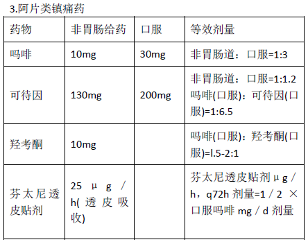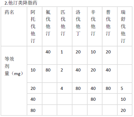 同类药物等效剂量换算关系