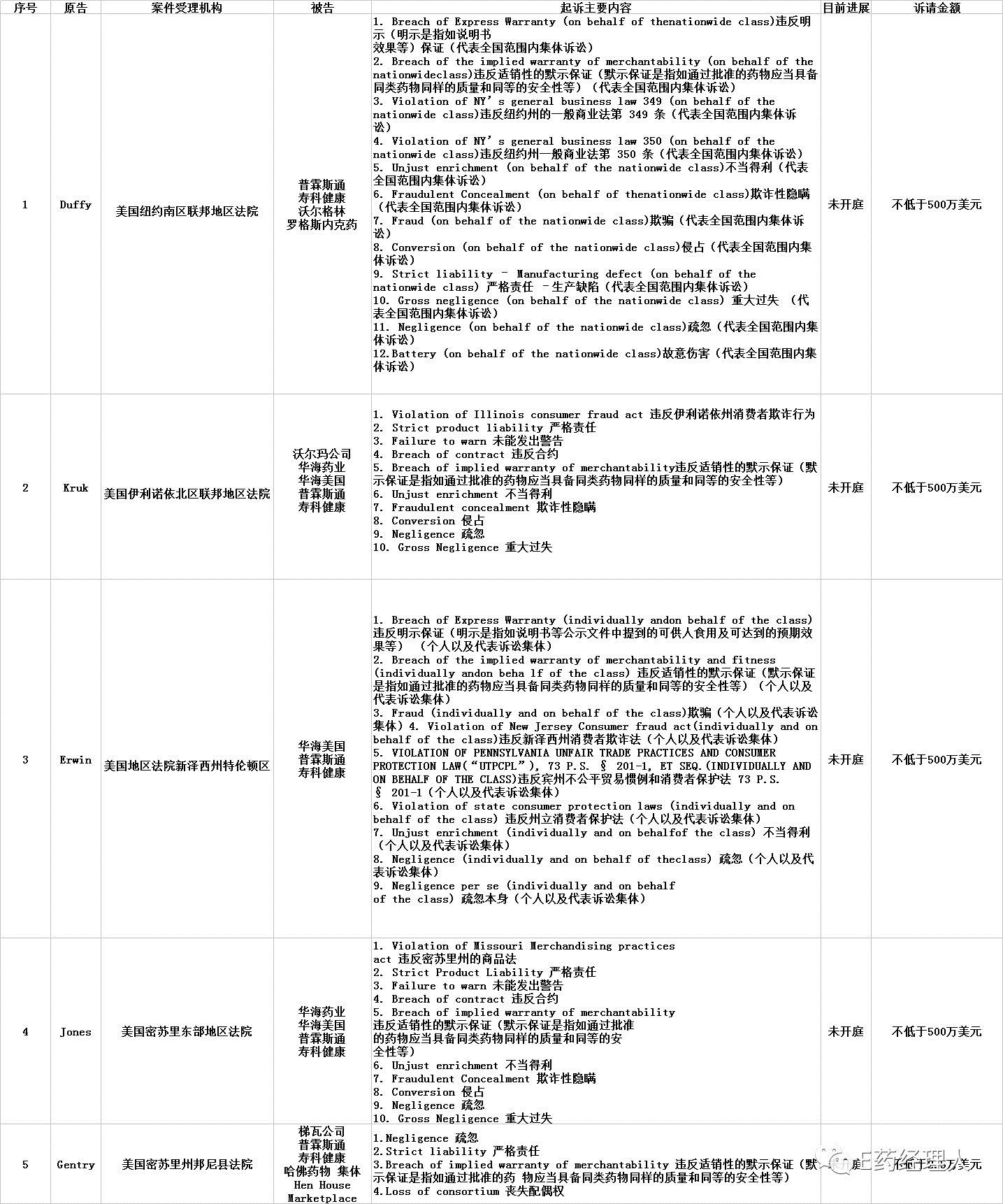 8日,华海药业再次发布公告称,美国市场消费者因浙江华海药业股份有限公司缬沙坦原料药的未知杂质中发现含量极微的基因毒性杂质(NDMA)事件,认为公司存在欺诈性隐瞒、违反合约、疏忽、不当得利等行为向美国纽约南区联邦地区法院、美国伊利诺依北区联邦地区法院等法院提起诉讼。从公告的内容来看,其中4起诉讼索赔不低于500万美元,也就意味着华海面临着不低于2000万美元的索赔。