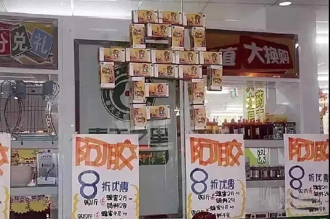 8折优惠POP连续多张排列在橱窗上,重复展示却巧妙强化同一促销主题。当然,单纯的POP排列必须要配以相关的药品陈列,这样才能不显得单调,且更能够抓住顾客眼球。