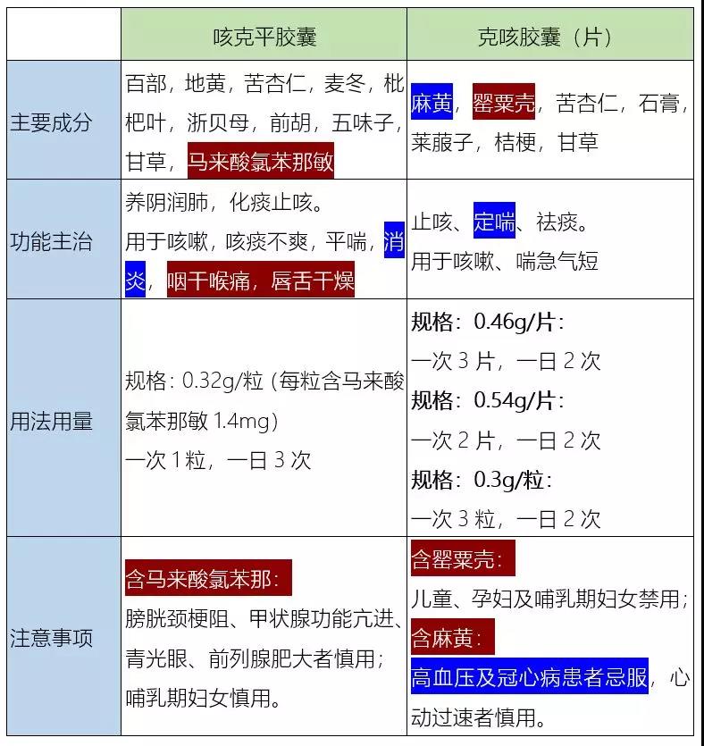 咳嗽是一种重要的生理保护性机制,同时也是临床常见的症状。咳克平胶囊与克咳胶囊(片)是临床常用的止咳类中成药,为了较少不良反应,至少要牢记下面2点!