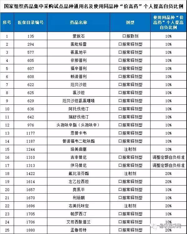 其中,基本药物和医保甲类的未中标产品,其患者自付提高10%,其他产品的自付提高20%。纳入肿瘤靶向药定额支付的直接提高20%。如果未中标产品的价格降到中标价,则不增加自付比例。