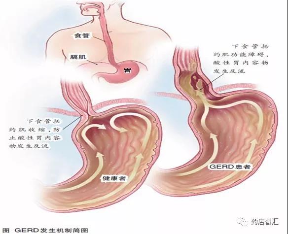 如果贲门或者括约肌其中一个部位出现其它因素的刺激或者病变,就会撕开一条口子,进入胃里的一部分食物会沿着这个口子向上反流,引起胃部灼热、打嗝、返酸等等。有时甚至会刺激到咽喉,引起咽喉不适,就像上文中的那位阿姨。有小部分药店人缺乏专业知识,会把这种症状误诊为咽喉炎。