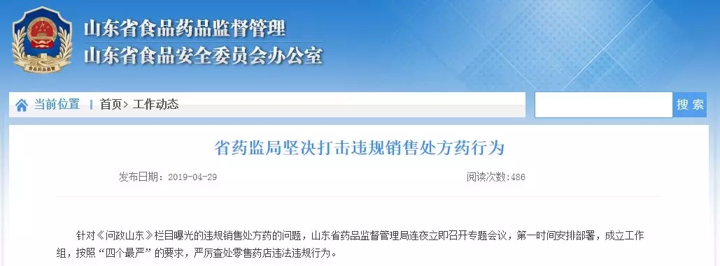 自山东曝出零售药店违法销售处方药问题后,山东省药监局在全省范围内展开了专项行动。重点查处违规销售处方药等行为,严厉打击药品零售环节违法违规经营行为。并在严厉查处违法违规行为的基础上,印发了《关于开展严厉打击零售药店违法违规行为专项行动的通知》(以下简称《通知》)。