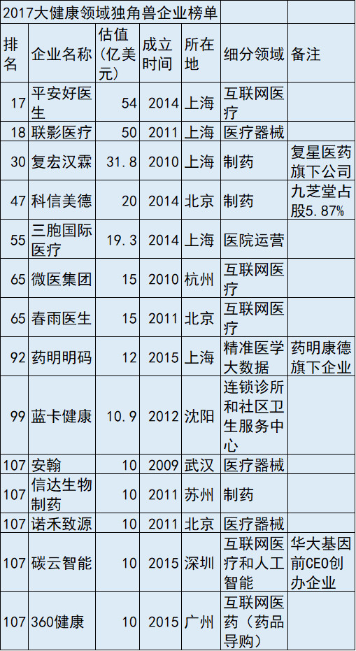 在包括医药、医疗在内的大健康领域,一共有14家企业上榜独角兽企业名单,其中医疗器械这个子领域占去了3家,分别为专注于医学影像设备的上海联影、研制出胶囊内镜机器人的武汉安翰、专注于基因测序的北京诺禾致源公司。