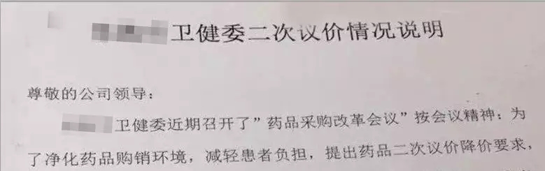 日前,江苏省某市卫健委二次议价的情况说明的文件在行业流传。