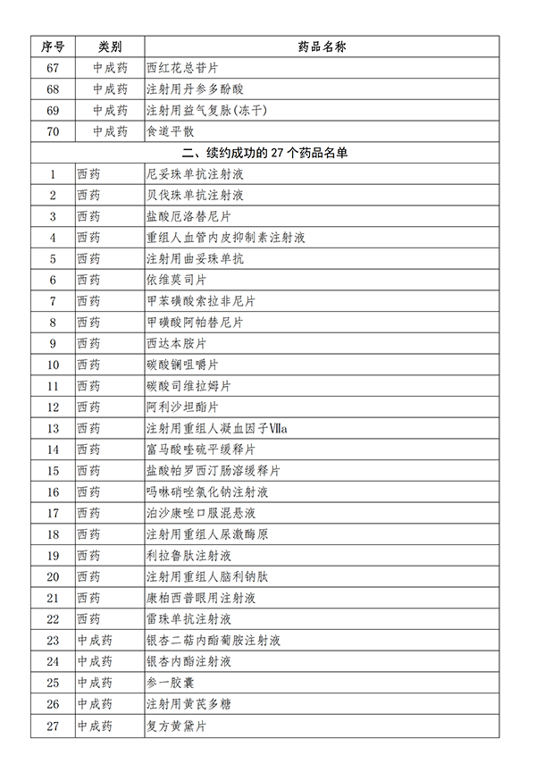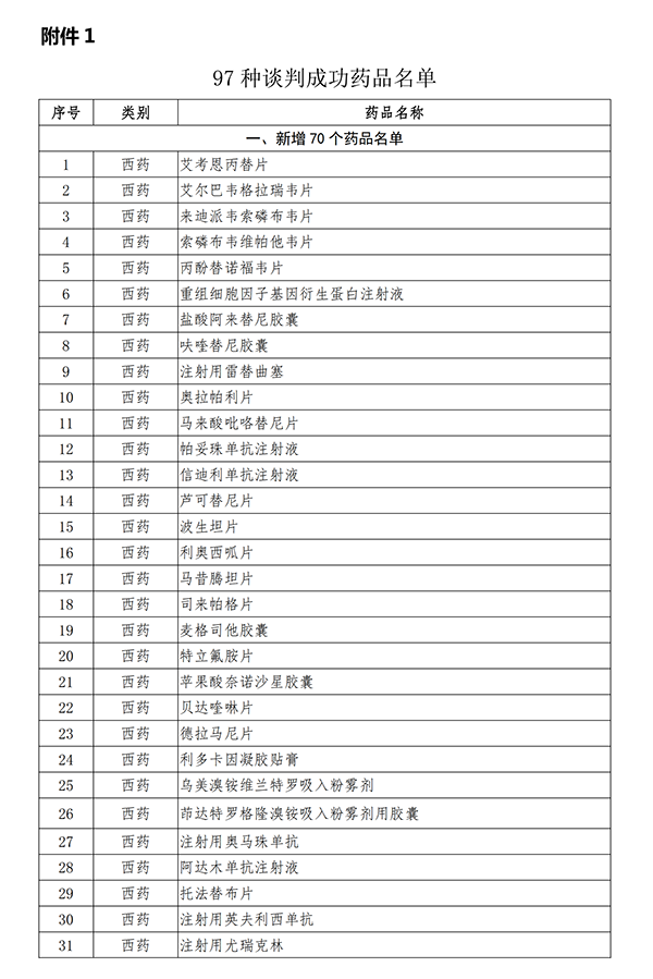 附97种谈判成功药品名单