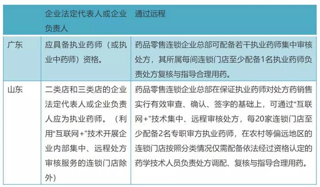 但是,在对执业药师配备方面还是有所区别的,不难发现,广东对实体店法定代表人和负责人有明确要求,必须具备执业药师资格。而山东省却有所区别,对于有远程药事的实体门店,不再强制要求每家店都要配备执业药师。
