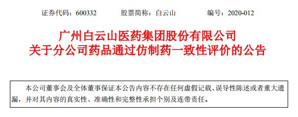 白云山3日晚发布公告称,公司分公司白云山制药总厂收到国家药品监督管理局签发的《药品补充申请批件》,头孢克肟颗粒已通过仿制药质量和疗效一致性评价。