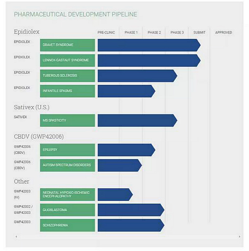 GW Pharmaceuticals公司研发管线(图片来源:GW Pharmaceuticals官方网站)
